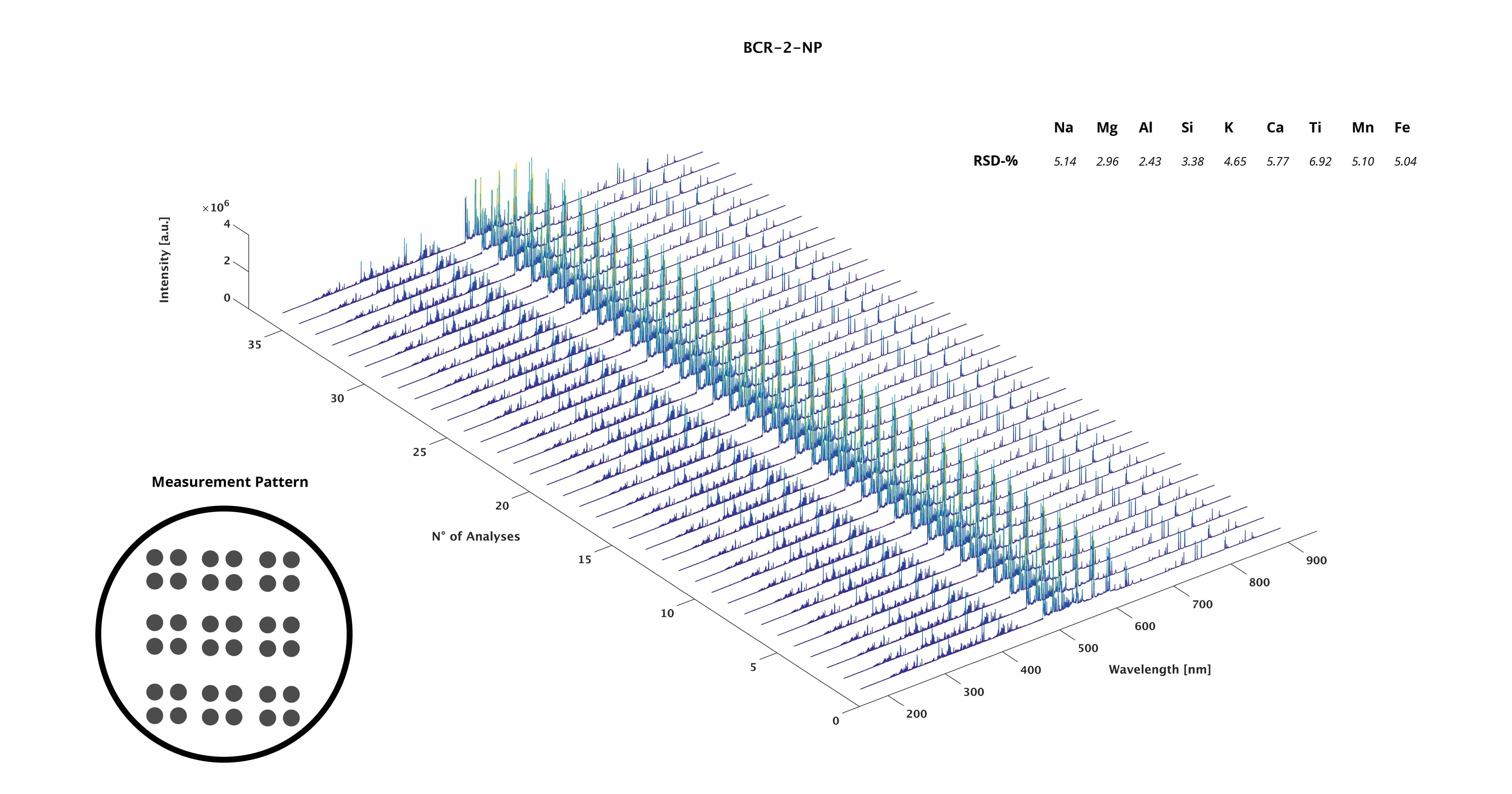 Our pressed pellets as well as the Nano-Pellets despite being binder-free are able to withstand the impact of the laser shots and are therefore suitable as reference materials for LIBS.